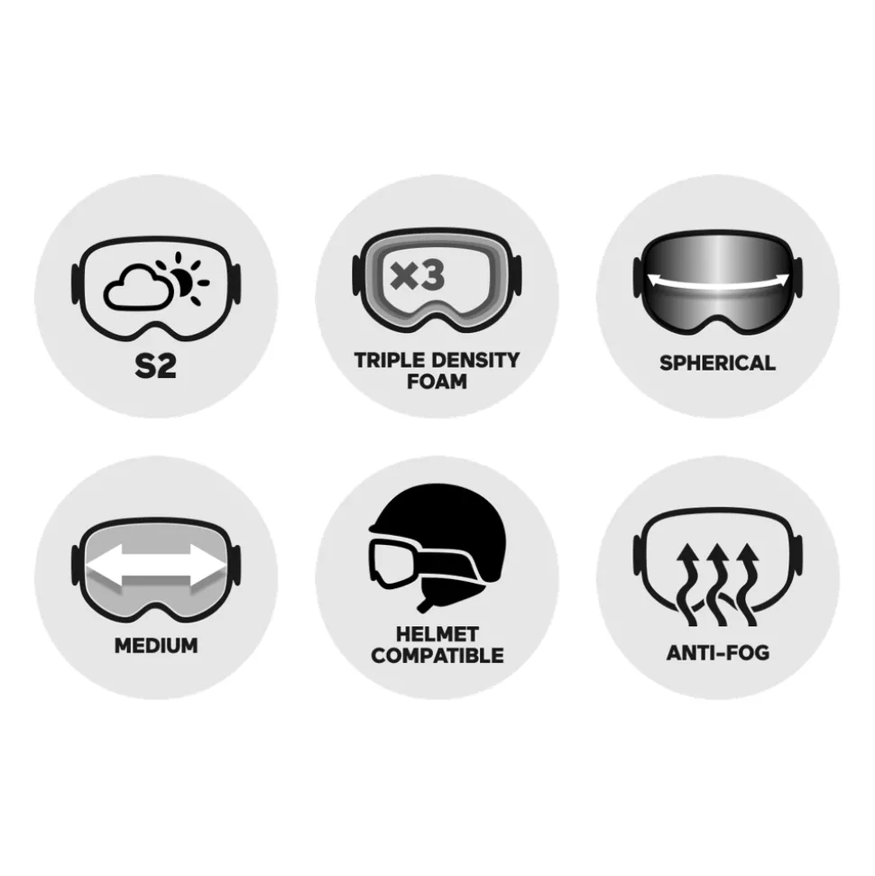 Ecran sphérique Carbonic-XEcran interne antibuée Fog-XTechnologie TLTCompatible avec le port du casqueMonture Responsive Fit™Système de réglage de strap QuickFitMousse triple densitéStrap en Silicone -