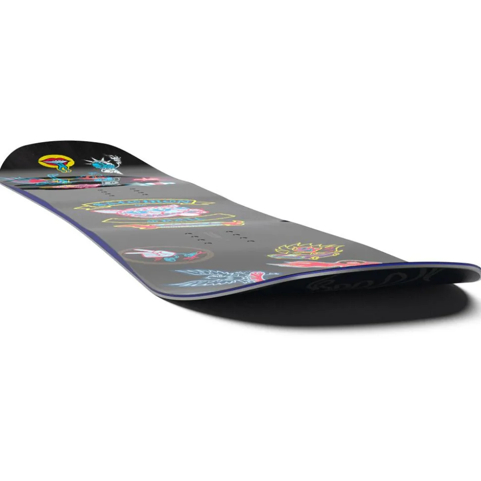 Cambre Plat : Le cambre plat pardonne plus facilement les erreurs qu’un cambre classique tout en restant plus stable qu’un cambre inversé. Il est plat entre les jambes et inversé en nose et en tail pour gagner en tolérance, mais aussi en déjaugeage et en portance en poudreuse. Un bon compromis pour ceux qui ne sont pas sûrs d’eux à 100%.
