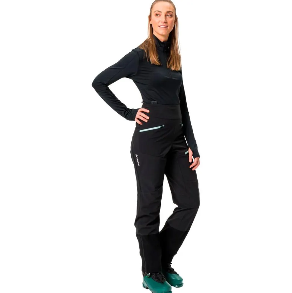 Le Moviso Softshell II de chez Vaude est un pantalon technique pour la randonnée à ski (ou autre moyen d’ascension !) et pour les femmes. Il est léger et stretch grâce à sa matière principale en polyester et en élasthanne. Des éléments comme les genoux préformés et les aérations permettent d’avoir une bonne liberté de mouvement et d’être bien à l’aise. Il bénéficie d’une membrane déperlante pour ne pas craindre la neige et les petites intempéries et vous protège bien du vent froid. La construction se veut responsable avec une partie de matériaux recyclés et un traitement déperlant durable Eco Finish, sans perfluorocarbures.