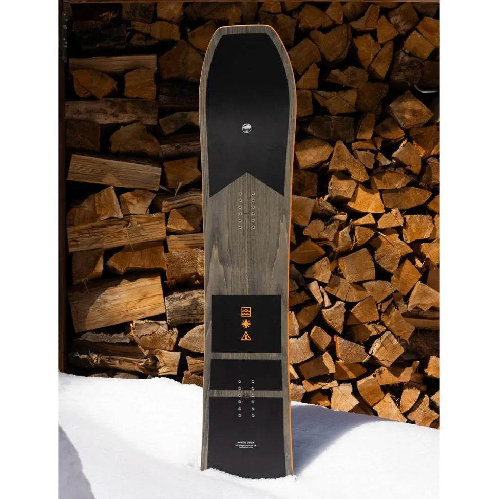 L’Arbor Coda excelle en freeride tout-terrain. Son cambre classique assure une accroche sans faille et une puissance remarquable à la sortie des courbes. Grâce à sa forme directionnelle, dotée d’un nose élargi et d’inserts positionnés vers l’arrière, elle déjauge facilement en poudreuse et amorce les virages avec une grande intuitivité. Sur piste damée comme en backcountry, la Coda délivre performance et plaisir de glisse à chaque descente.