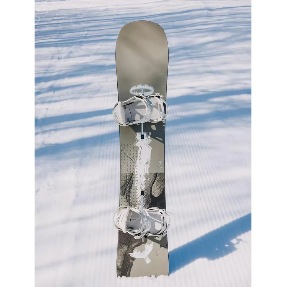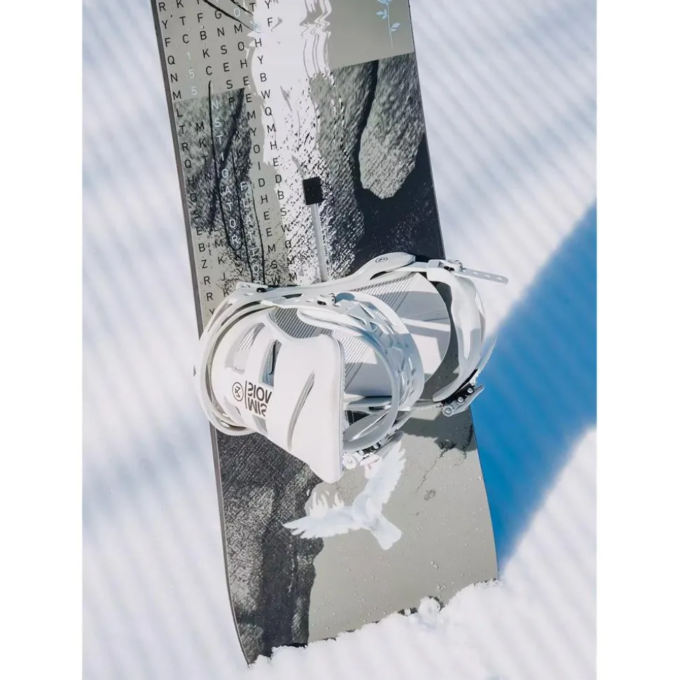 L’Instigatora une forme directionnelle, ce qui signifie que son tail est légèrement plus étroit que son nose et que les inserts sont positionnés un peu en arrière. Cela se traduit par une planche plus facile à contrôler, avec des entrées en courbe plus fluides et une meilleure flottaison dans la poudreuse. Son cambre classique, sans être excessif, assure une bonne accroche sur les pistes tout en restant modéré. Son flex souple rend la planche peu exigeante physiquement, permettant de profiter pleinement des descentes tout au long de la journée. Facile à manœuvrer et tout-terrain, cette planche est idéale pour s’initier sur les pistes et dans les petites zones hors-piste de la station.