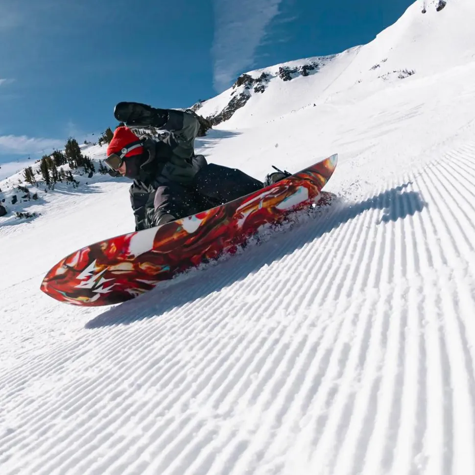 Cambre Plat : Le cambre plat pardonne plus facilement les erreurs qu’un cambre classique tout en restant plus stable qu’un cambre inversé. Il est plat entre les jambes et inversé en nose et en tail pour gagner en tolérance, mais aussi en déjaugeage et en portance en poudreuse. Un bon compromis pour ceux qui ne sont pas sûrs d’eux à 100%.