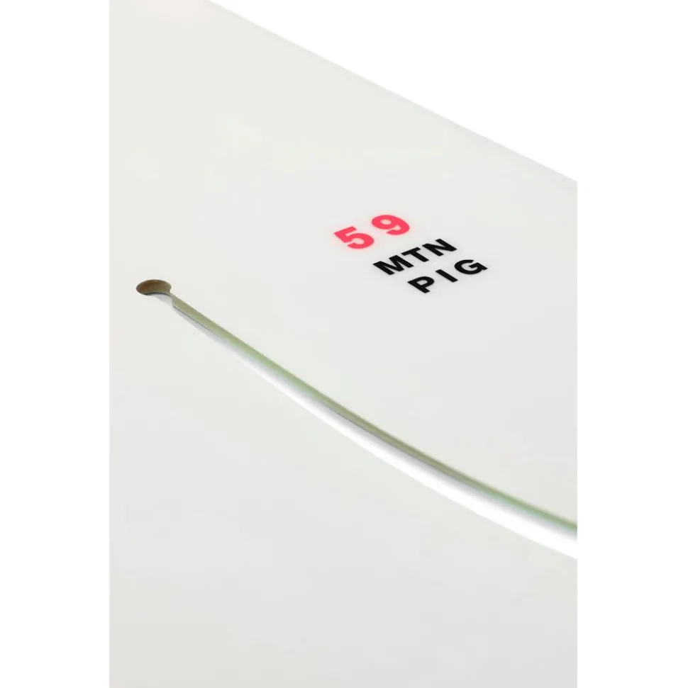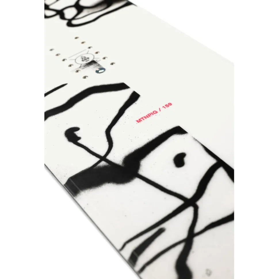 Le snowboard Mtnpig est conçu pour le freeride polyvalent. Grâce à son cambre classique entre les pieds et ses rockers en spatule, il offre une excellente accroche sur neige damée tout en conservant une bonne maniabilité et une portance optimale en poudreuse. Son shape directionnel avec un nose plus large et un tail plus étroit assure une navigation fluide et stable, quelle que soit la surface.