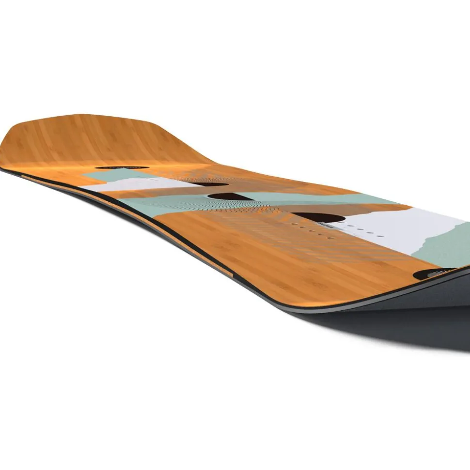 Cambre Plat : Le cambre plat pardonne plus facilement les erreurs qu’un cambre classique tout en restant plus stable qu’un cambre inversé. Il est plat entre les jambes et inversé en nose et en tail pour gagner en tolérance, mais aussi en déjaugeage et en portance en poudreuse. Un bon compromis pour ceux qui ne sont pas sûrs d’eux à 100%.