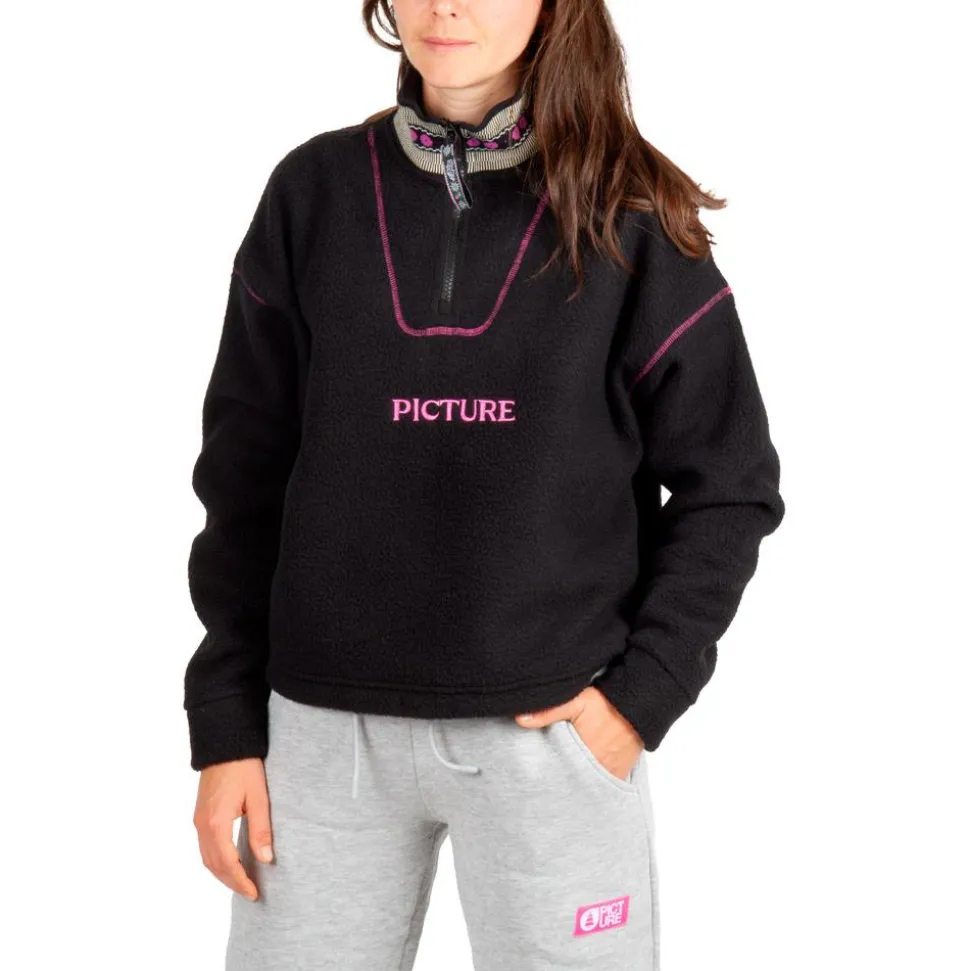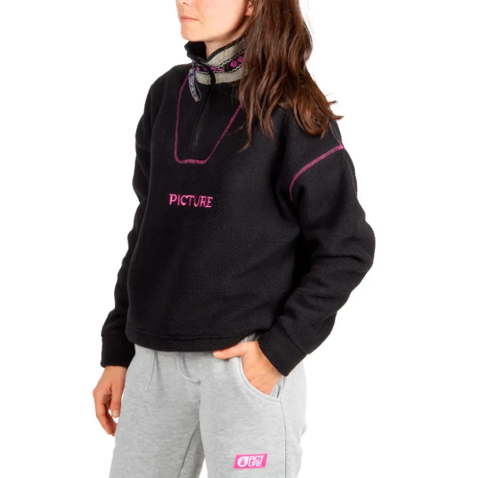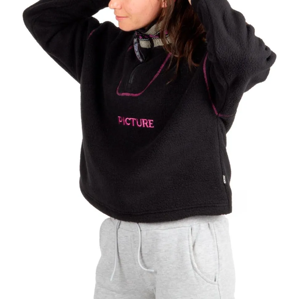 La polaire Cylla Crop 1/4 Black de Picture combine sherpa recyclé, coupe ample et col montant pour un confort thermique optimal sur les pistes comme au quotidien.