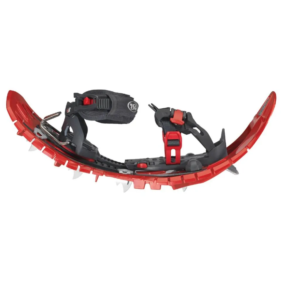 Jamais une raquette à neige n’a eu une accroche aussi impressionnante. Associés aux lames verticales, les crampons bidirectionnels enacier inoxydableplacés sous les pieds permettent une traction optimale en montée, une excellente retenue en descente et une parfaite tenue latérale en dévers. Epousant la forme du terrain, la flexibilité du châssis assure un superbe maintien, une complète sécurité et évite le glissement intempestif en poudreuse.La griffe avant permet une traction maximale dans les pentes raides.Les lames verticales assurent une traction et une retenue parfaite que ce soit en dévers ou en pente forte sur les neiges douces.8 crampons interchangeables en acier inoxydable, semblables à des crampons d’alpinisme, assurent l’accroche sur tous types de neige.