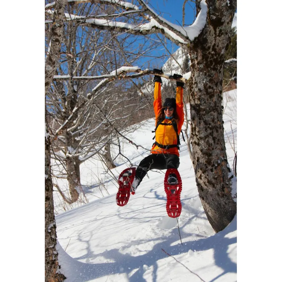 DÉMARCHE NATURELLE : Grâce à leur hyper-flexibilité, leur légèreté et leurs fixations ergonomiques, les raquettes à neige Symbioz s’adaptent à tous les terrains avec un déroulé de pied tout à fait étonnant. L’élasticité et la réactivité des renforts amènent encore plus de liberté et de facilité.