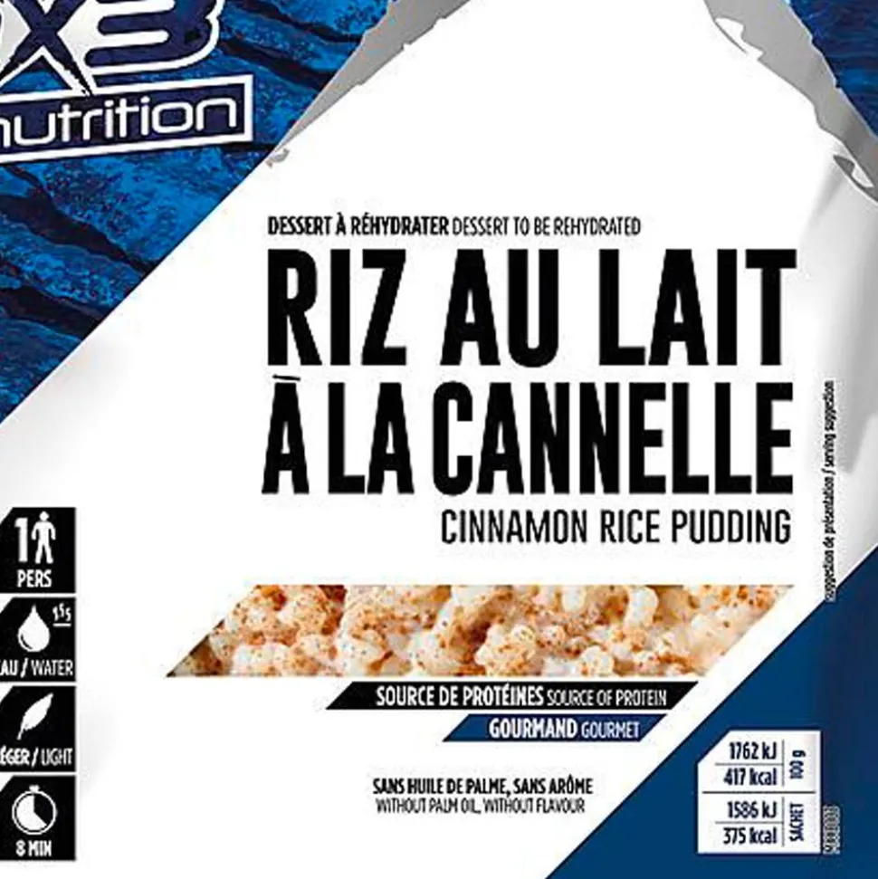 Le Riz Au Lait Cannelle de MX3 est un dessert lyophilisé savoureux et énergétique, idéal pour les aventures en plein air.
