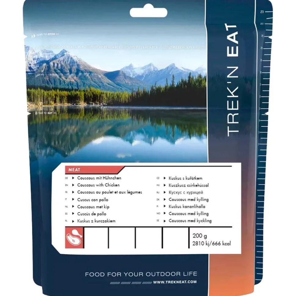 Emportez le Couscous au poulet et aux légumes de Trek’n’Eat pour un repas lyophilisé savoureux, facile à préparer et énergisant lors de vos bivouacs en plein air.