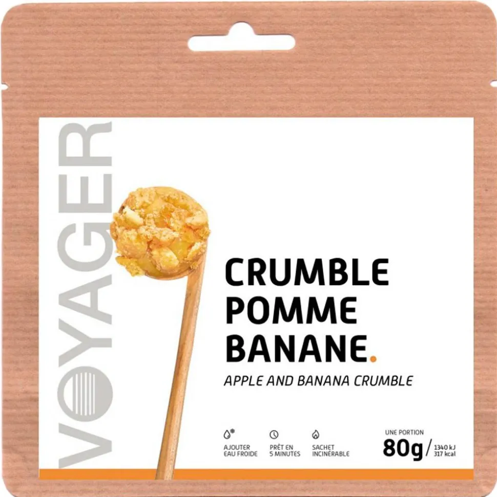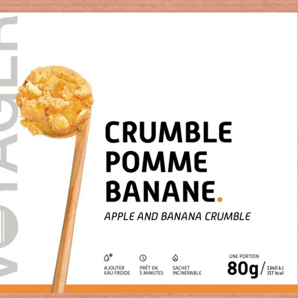 Vous allez raffoler prendre votre petit déj’ en plein air grâce au plat lyophilisé Crumble Pomme-Banane de la marque Voyager qui permet de reprendredes forcesdès le réveil