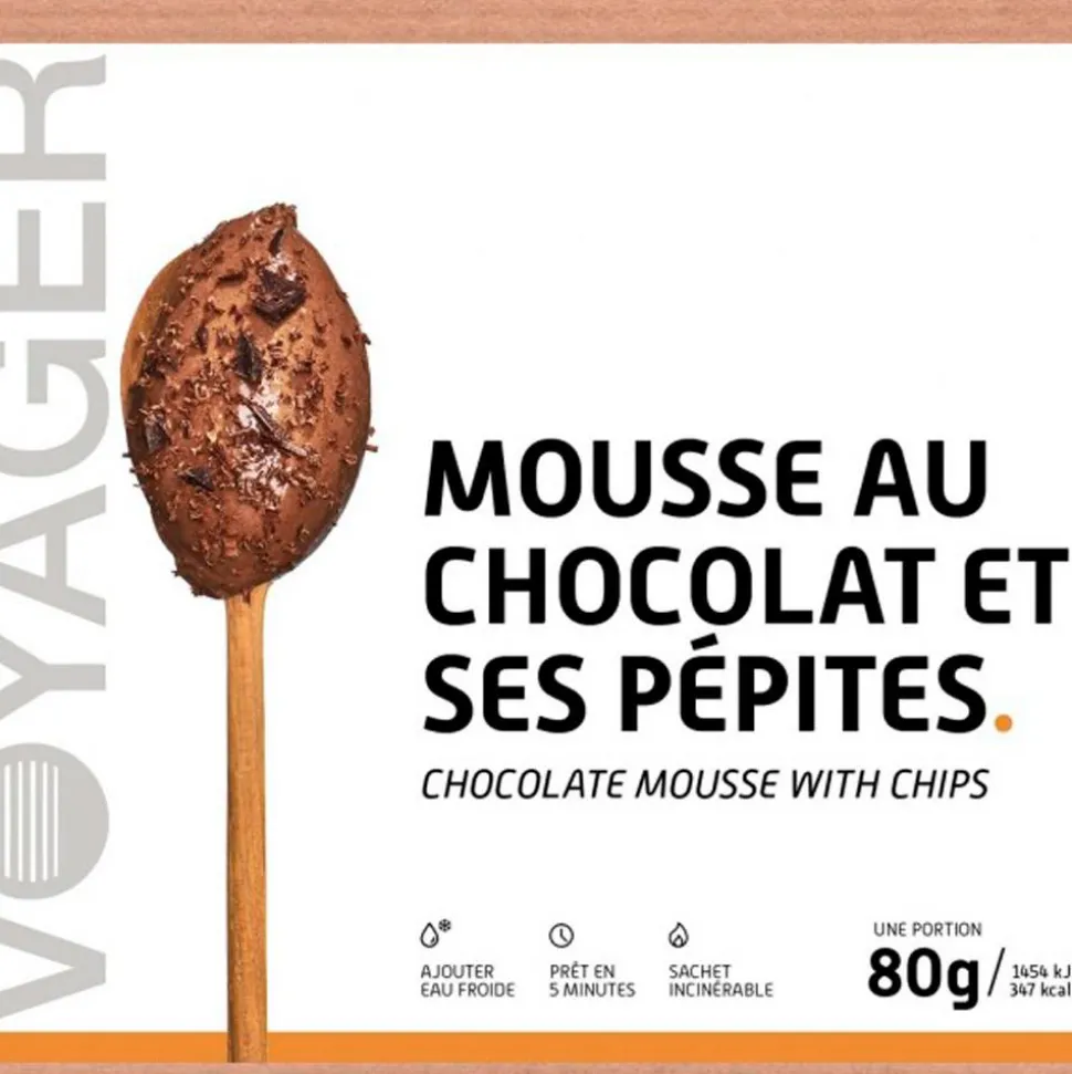 Pour faire un break et regagner la force de continuer, la Mousse Au Chocolat Et Ses Pépites de voyager est idéale et apporte la dose de glucides et de protéines dont vous avez besoin pour votre aventure.