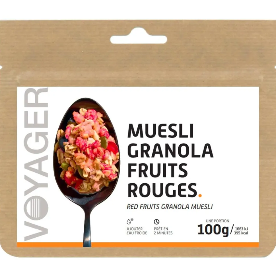 Le Muesli Granola Fruits Rouges de la marque Voyager est un petit-déjeuner lyophilisé qui se veut très facile à préparer et qui fournit une bonne dose d’énergie dès le matin.