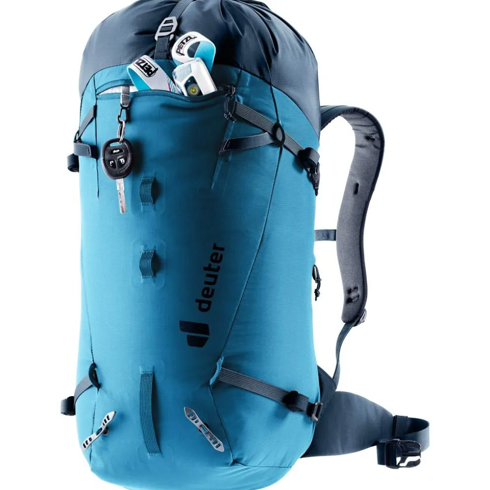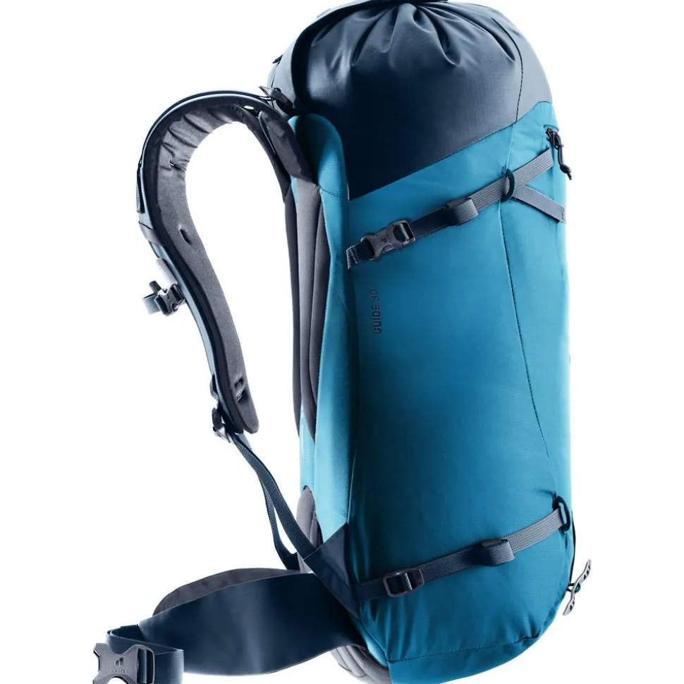 Le sac à dos Guide 30 Wave Ink de Deuter est un modèle robuste et léger. Ses bretelles ergonomiques et sa ceinture abdominale amovible offrent un confort de port optimal à chacune de vos sorties.