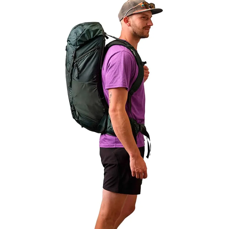 Le sac à dos Paragon 40 Cascade Green de Gregory allie confort, stabilité et écoresponsabilité pour vos randonnées et bivouacs courts.