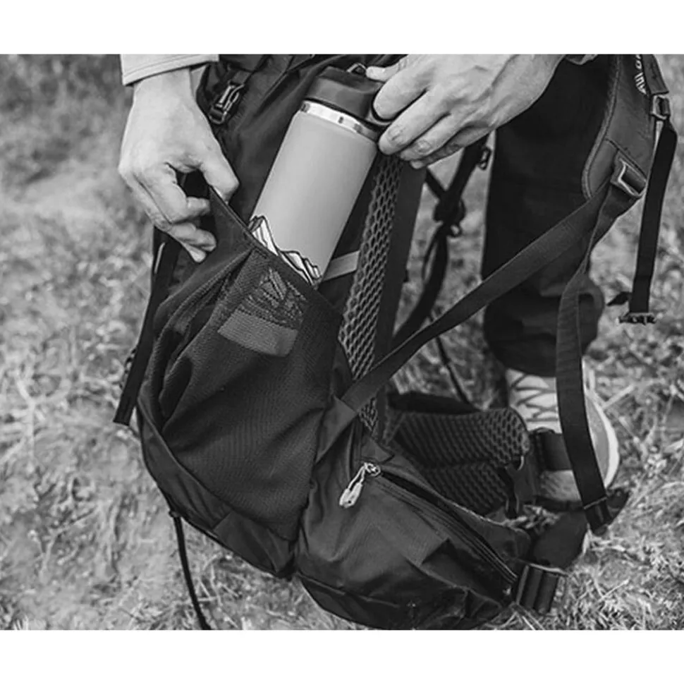 Protection pluiePorte-bâtonsRangement objet de valeurCompartiment pour sac de couchageSangle de poitrineCeinture abdominaleCompatible hydratationCompartiment bouteille -