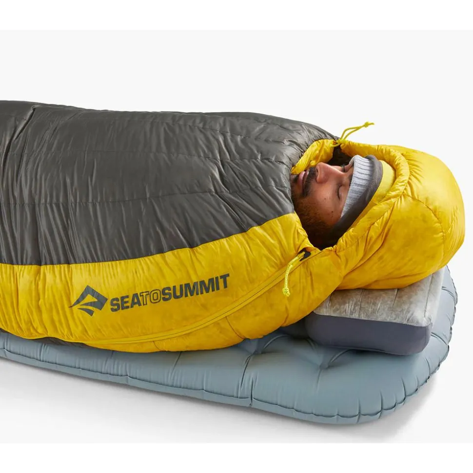 Le sac de couchage Spark -9°C/15°F de Sea To Summit, léger et résistant à l’eau, garantit une isolation thermique optimale pour les conditions extrêmes.