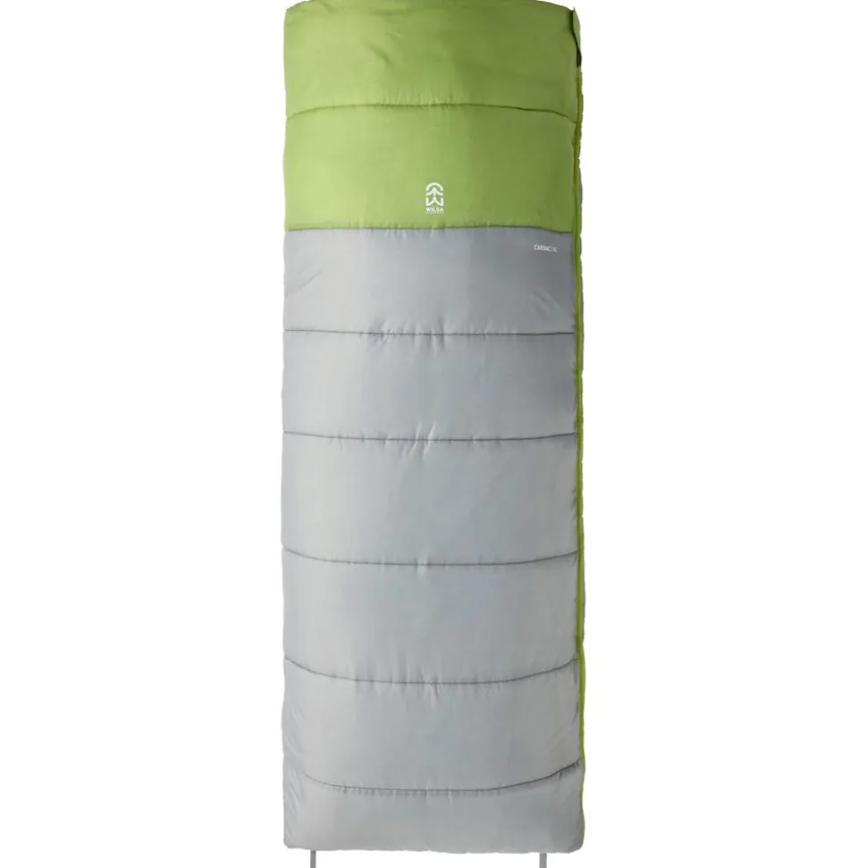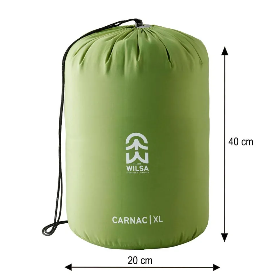 Le Carnac XL Grey Green de Wilsa est un sac de couchage spacieux et isolant, idéal pour les nuits douces en plein air, avec un garnissage synthétique durable et une construction double-couche.