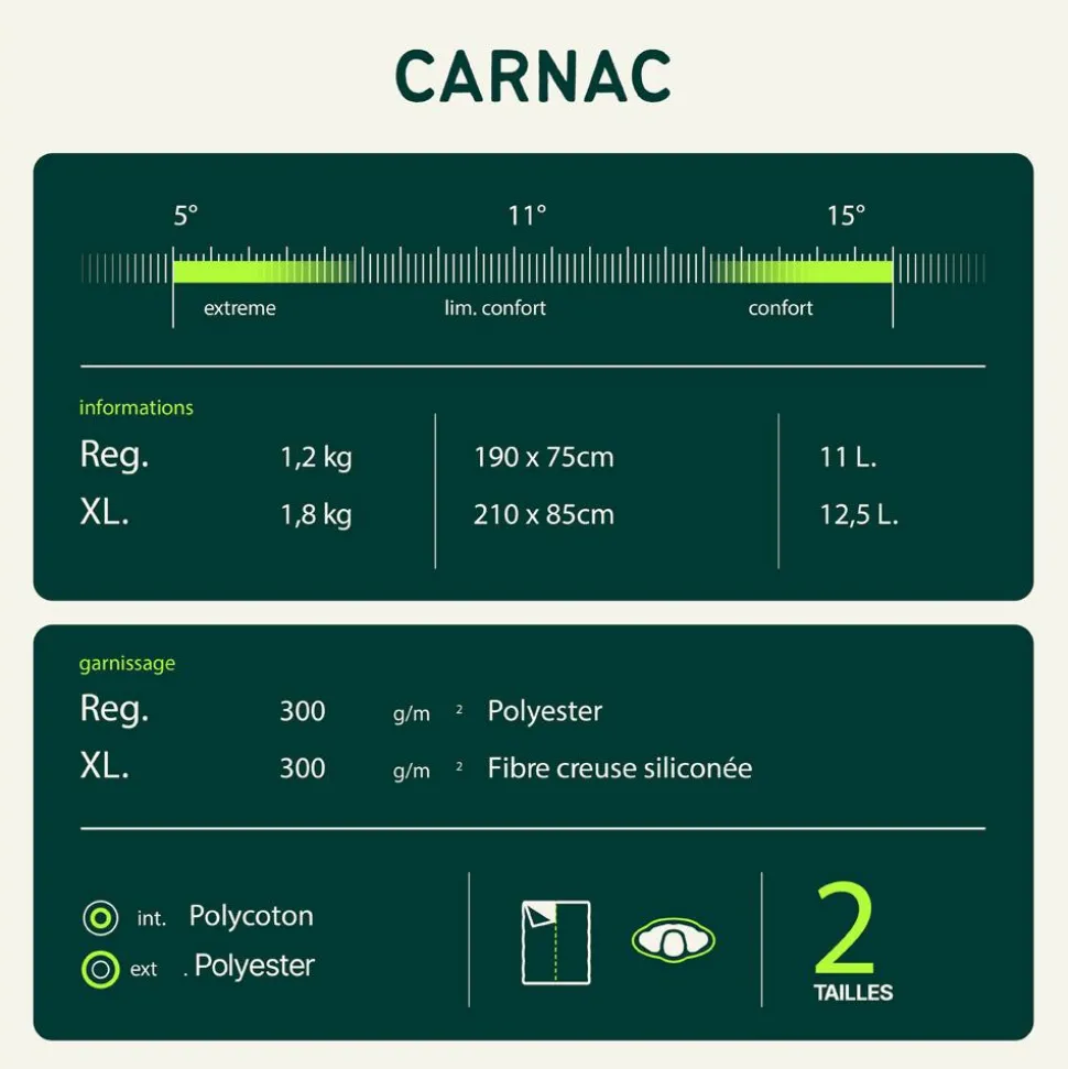Données techniques Sac de couchage Carnac XL