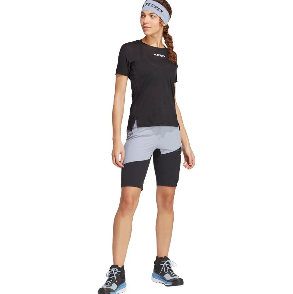 Profitez des sentiers de montagne avec le short femme Adidas W Xperior Silver Violet Black, un modèle confortable fabriqué principalement en polyester recyclé et doté de poches zippées.