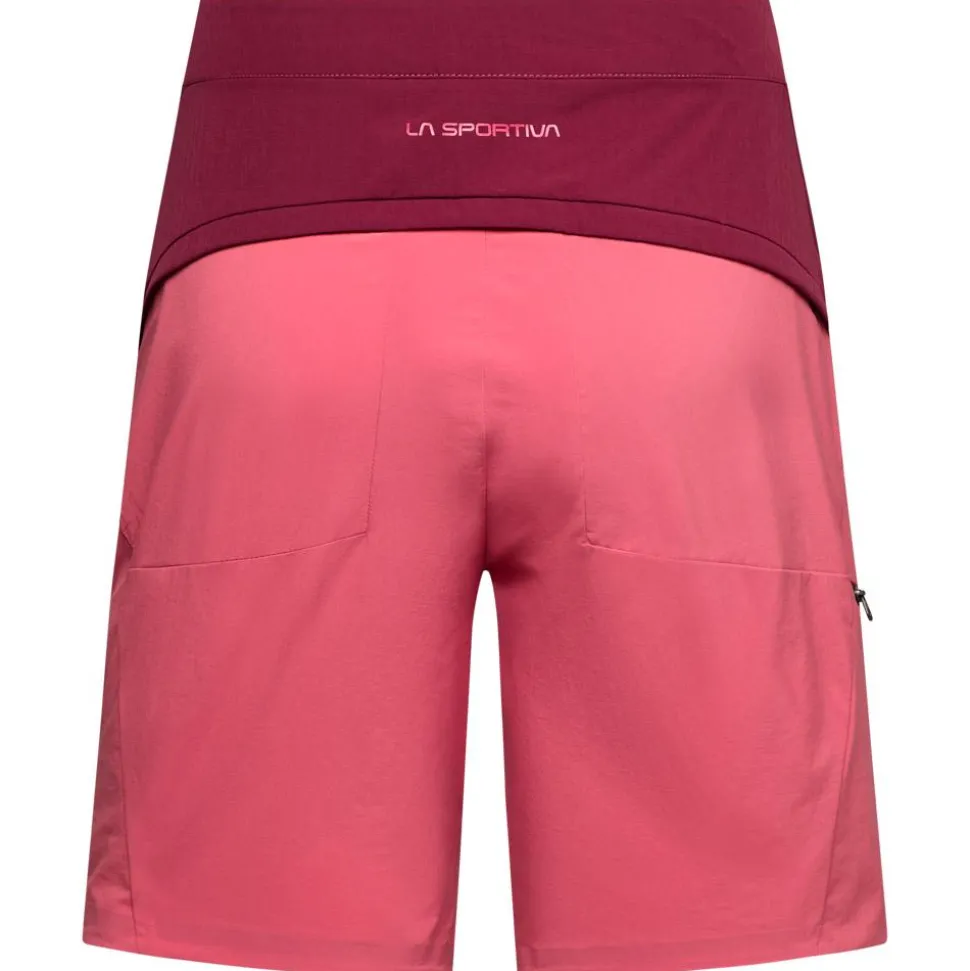 Le short La Sportiva Monument Shorts W Rosebay Redwood offre confort, liberté de mouvement et respirabilité pour vos randonnées grâce à une matière stretch et une coupe adaptée.
