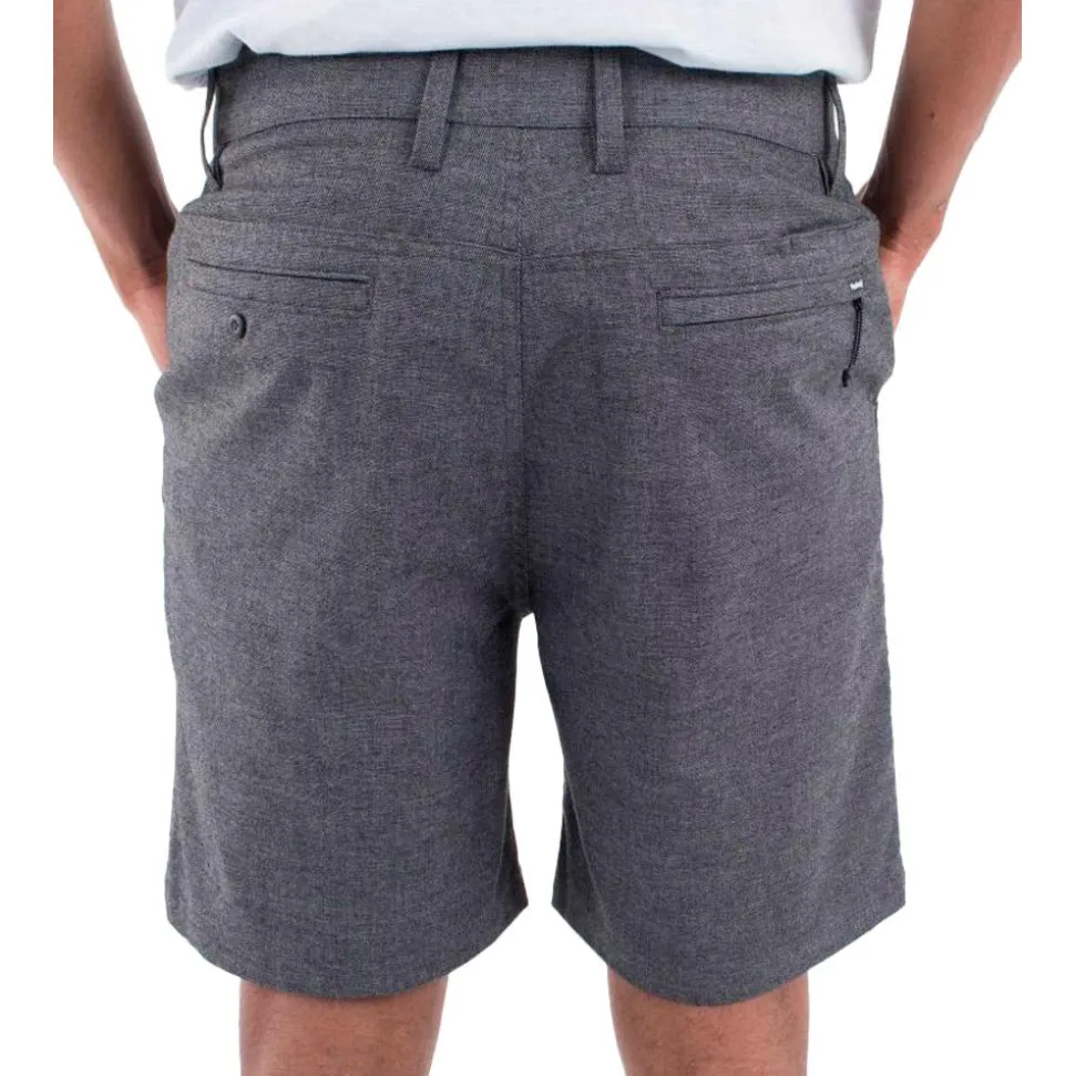 Le short Hurley H2O Dri Coastal 19 Black Heather allie confort et style éco-responsable avec son mélange de coton, polyester recyclé et spandex, parfait pour un usage quotidien.