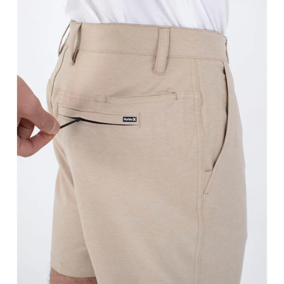 Le Phantom Heather Walkshort 18 Khaki de Hurley, confectionné en polyester recyclé, offre flexibilité, protection déperlante et séchage rapide.