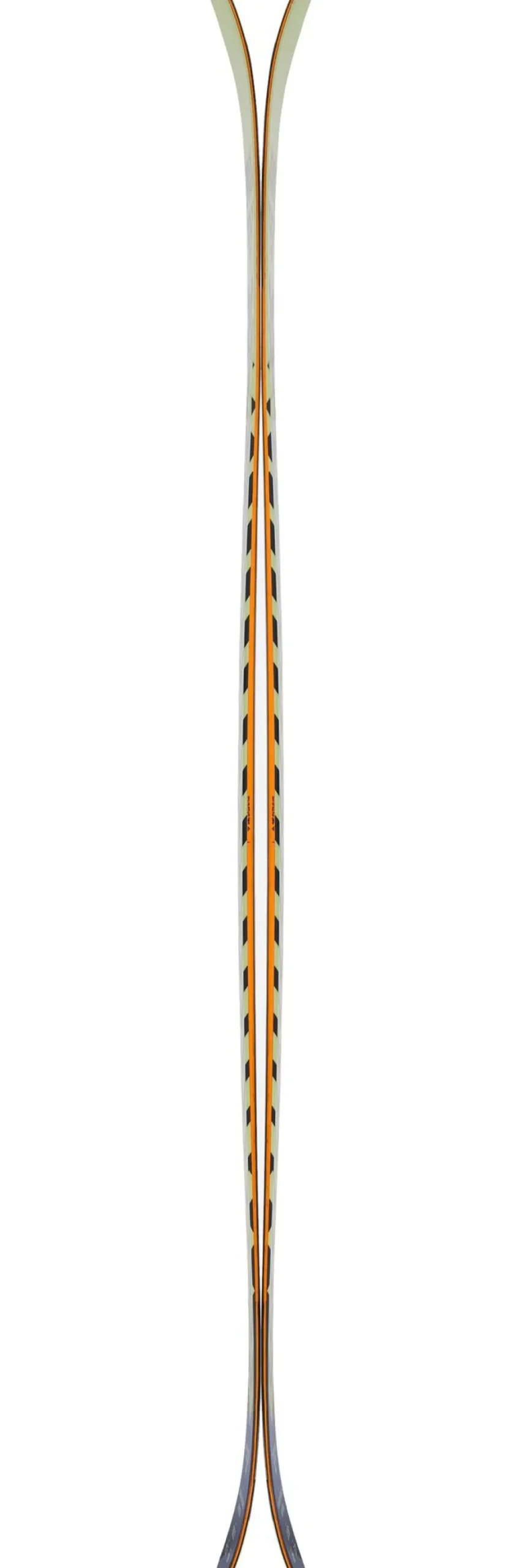 L’Anima de Black Crows incarne l’esprit pur du freeride engagé. Son patin de 115 mm assure une portance significative en poudreuse ou neige meuble, prêt à avaler les couloirs larges comme les pentes plus techniques. Le double rocker progressif permet des mises en pivot rapides et offre une excellente maniabilité pour slasher facilement ou placer des relances entre deux virages. La construction sandwich bois peuplier, renforcée par des bandes carbone-kevlar et de la fibre de verre, garantit dynamisme et explosivité sans pénaliser la stabilité à pleine vitesse. Avec son flex progressif en spatules etcambre classique sous le pied,l’accroche reste efficace sur neige dure tandis que le flex souple absorbe les variations du relief.