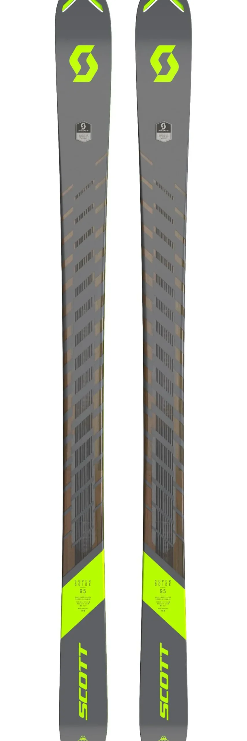 Pour construire le ski de rando polyvalent Superguide 95, l’équipementier Scott a choisi des matériaux capables d’offrir un excellent rapport poids/puissance. Par exemple, le noyau est composé d’essences de bois de hêtre et de paulownia afin d’apporter de la légèreté et de la souplesse à la latte, qualités très appréciables lors des phases d’ascension où chaque gramme compte. Mais pour offrir un comportement proche des skis alpins à la descente, Scott a renforcé ce noyau en apposant des couches en fibre de carbone et d’aramide, ce qui rigidifie le ski sans l’alourdir. Ainsi, le Superguide 95 est stable et tonique lorsque vous dévalez les pentes gorgées de neige du backcountry. Pour éviter de s’enfoncer dans la poudreuse, il dispose d’un patin de 95 mm de largeur et d’un rocker en spatule. Sous les pieds, un cambre plat permet d’accrocher aux neiges dures et permet à ce ski d’être polyvalent et de s’adapter à différents terrains.