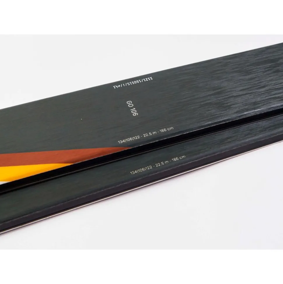 Le Go 106 Ti est un ski freeride qui a du caractère. Son noyau en bois de paulownia souple et léger et renforcé par une double plaque de titanal qui lui donne de la rigidité, pour plus de puissance et de stabilité. Son rayon est fait pour les grandes courbes, et avec sa construction sandwich et son cambre classique vous aurez ce qu’il faut sous les pieds pour tracer de belles grandes lignes à toute vitesse sur les pentes enneigées en pleine montagne. D’ailleurs, son patin de 106 mm lui permet de bien flotter dans la poudreuse en hors-piste, tandis que le double rocker se charge de sortir facilement le nez du ski de la peuf et aide à le manoeuvrer dans la fraîche. Le Go 106 Ti, c’est le top si vous voulez foncer dans la poudreuse en maîtrisant à la perfection vos prises de carre.