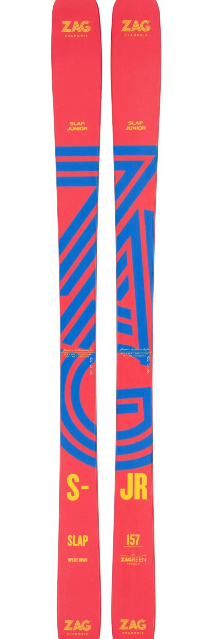 Zag a conçu la Slap Jr à partir de la Slap Team mais avec 90 mm au patin au lieu de 94. Pour le reste, la construction robuste en noyau de peuplier est la même, avec une double couche de fibres de verre multi-axiale et une construction CAP. Ses quelques millimètres en moins ne l’empêche pas de conserver une bonne flottaison dans la poudreuse, et lui octroie une plus grande maniabilité. Ce modèle robuste a beaucoup d’énergie à dispenser et permet de tracer, slalomer et virer court sans difficulté grâce à son rocker avant et arrière. Le Slap Jr, en somme, est un ski polyvalent all mountain qui permet aux jeunes skieurs de suivre et rattraper les grands dans toute la station!