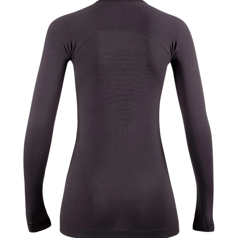 Le sous-vêtement technique pour femme Uyn Energyon est un modèle très respirant, conçu pour les entrainements de ski nordique au rythme soutenu comme au ski de randonnée par temps plus doux. Au contraire, il ne sera pas adapté aux sorties plus tranquilles les jours très froids car la technologie Flowtunnels lui assure un flux d’air permanent. Ce système consiste en de multiples perforations réparties aux zones les plus susceptibles de surchauffer comme le dos, les aisselles et le torse. L’humidité est ainsi rapidement évacuée et la température corporelle peut être efficacement maintenue. Les manches longues permettent d’ajouter une isolation thermique légère et la grande élasticité des tissus permet de se mouvoir librement. Enfin, ce haut est conçu sans couture verticale pour éviter les irritations dues aux frottements et favoriser un meilleur maintien musculaire.