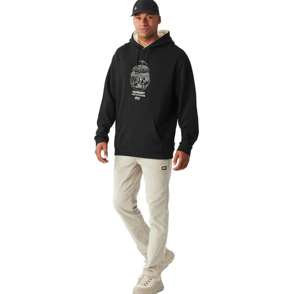Le sweat Picture Julka Plush mise sur un molleton 330 g en coton biologique pour offrir une sensation de confort durable. Sa coupe large favorise une aisance naturelle, idéale au quotidien ou après une session sportive. La capuche doublée en sherpa apporte un surplus de chaleur, tandis que le cordon de serrage permet de l’ajuster selon les besoins. On retrouve également une poche kangourou fonctionnelle, des finitions côtelées à la taille et aux poignets, pour une tenue structurée et un style décontracté.