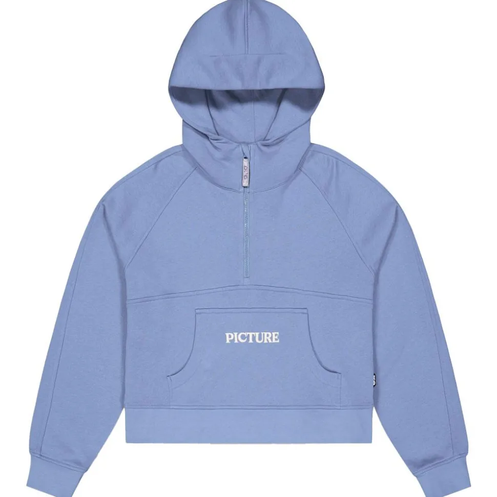 Avec sa coupe courte carrée très tendance, le sweat pour femme Picture Quenda 1/2 Zip Stonewash en coton bio offre confort, praticité et style.