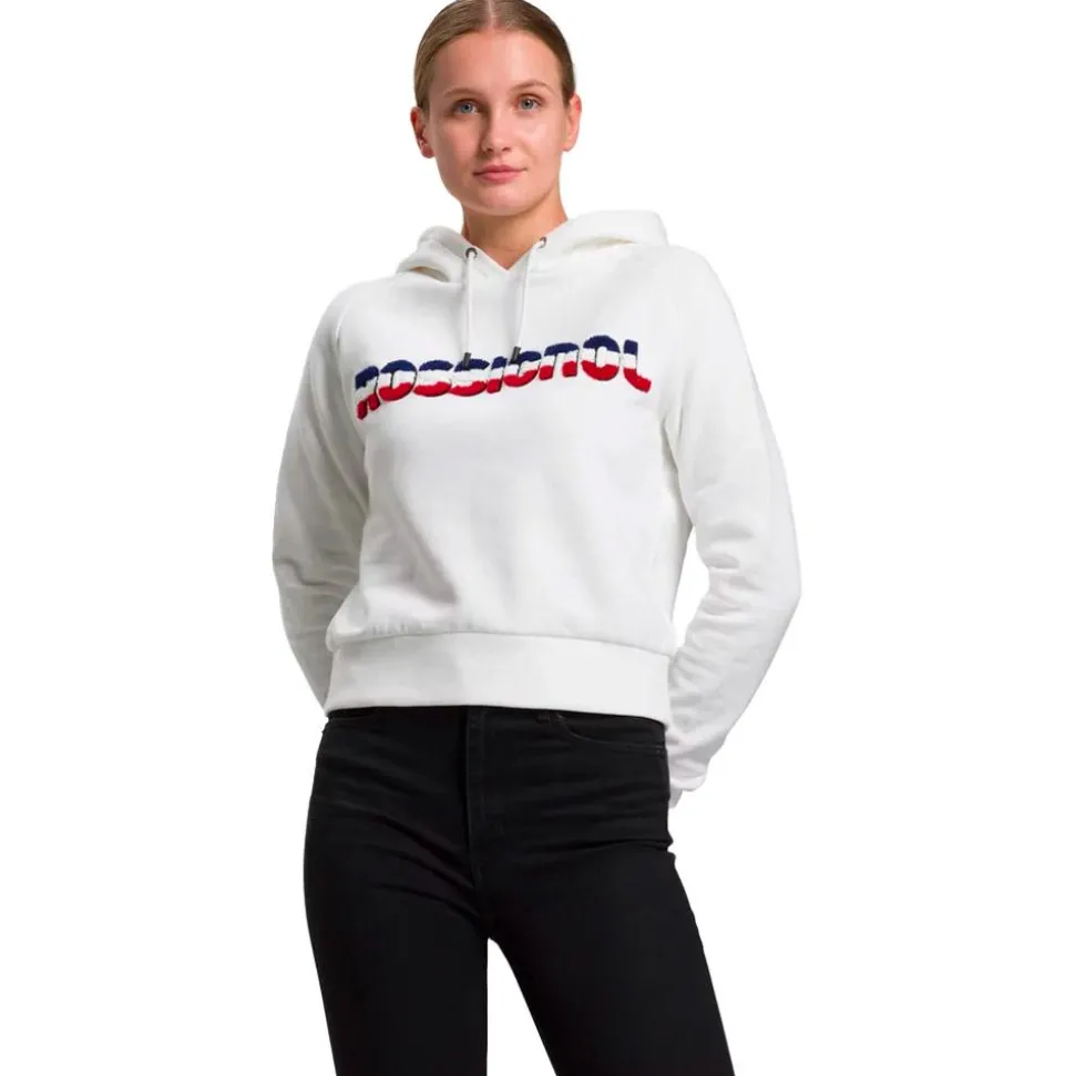 Le sweat à capuche femme Rossignol Dossard est composé à 100% coton. Confortable à porter en station, après une longue journée passée sur les pistes, il présente une coupe courte, très flatteuse.
