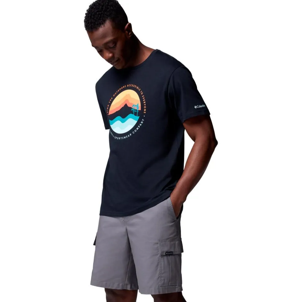 Le t-shirt de randonnée Columbia Path Lake Graphic Tee IIBlack Circular Linescape combine douceur du coton bio et esthétique outdoor, idéal pour les passionnés de nature au quotidien.