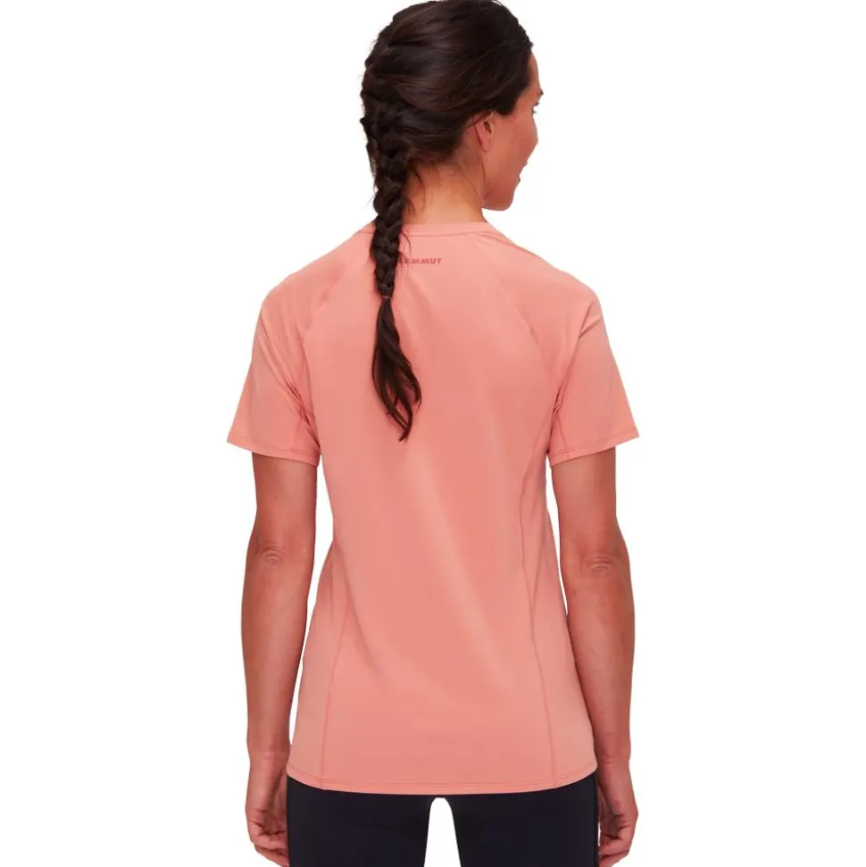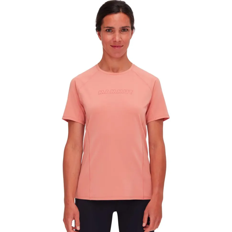 Le t-shirt Mammut Selun FL Logo W Quartz Dust allie confort, protection UV UPF50+ et technologie anti-odeur pour les randonneuses actives.
