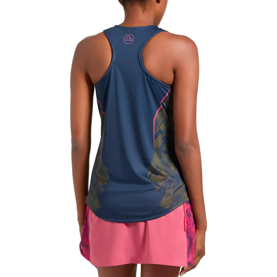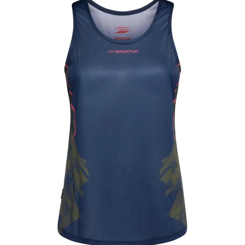 Le tee-shirt La Sportiva Pacer Tank W Night Sky Rosebay est un modèle de trail pour femme, fabriqué en polyester recyclé, assurant légèreté, confort, séchage rapide, contrôle des odeurs et liberté de mouvement grâce à ses manches sans manches