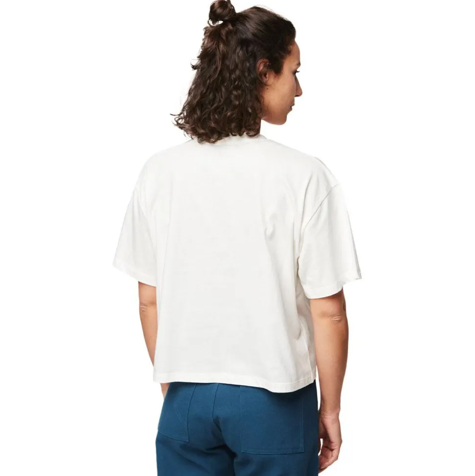 Le t-shirt pour femme Picture Keynee White, en coton biologique avec imprimé avant, allie confort et style durable pour une allure moderne décontractée.