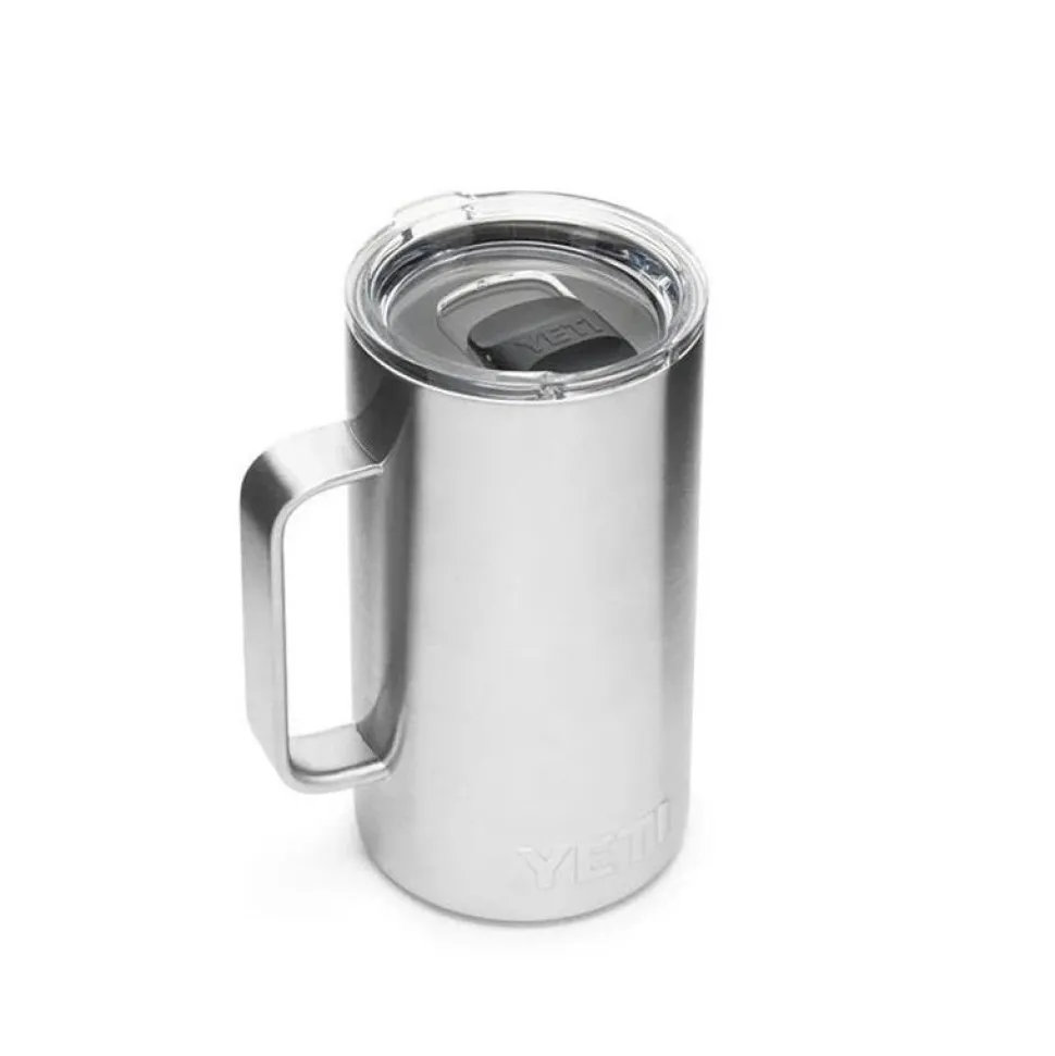 La pinte de bière Rambler 24 OZ (710 ml) Stainless Steel de chez Yéti est un modèle robuste, doté d’un couvercle et bien isolé, idéal pour garder une bière bien fraîche ou un café bien chaud en camping.
