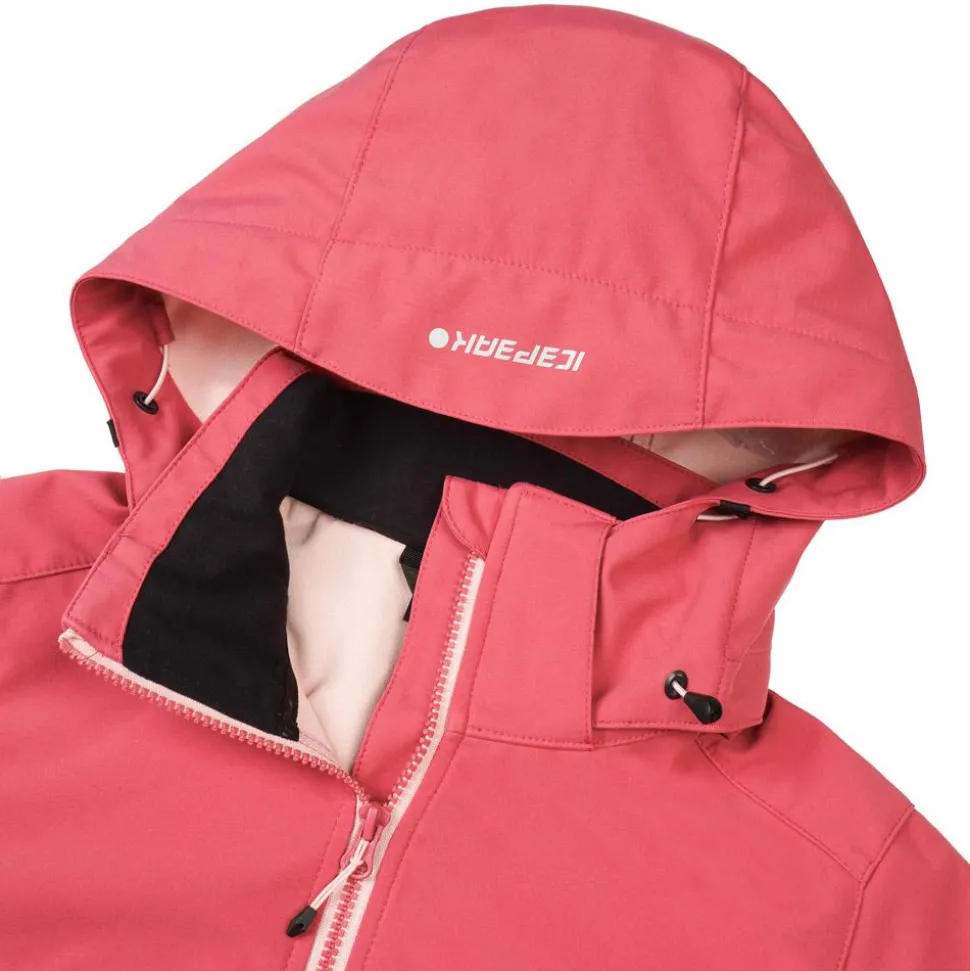 La veste de rando Icepeak Bathgate Framboise, imperméable et respirante, avec traitement DWR éco, est idéale pour affronter les éléments en montagne avec confort et praticité.