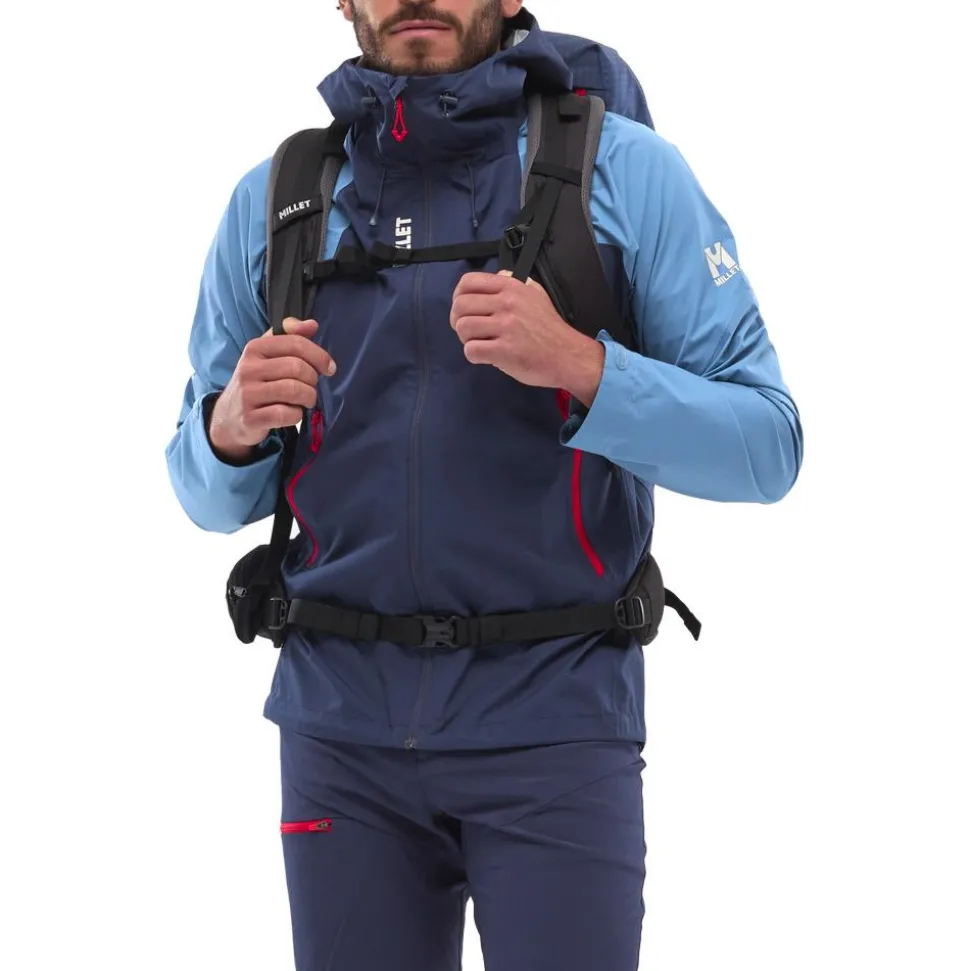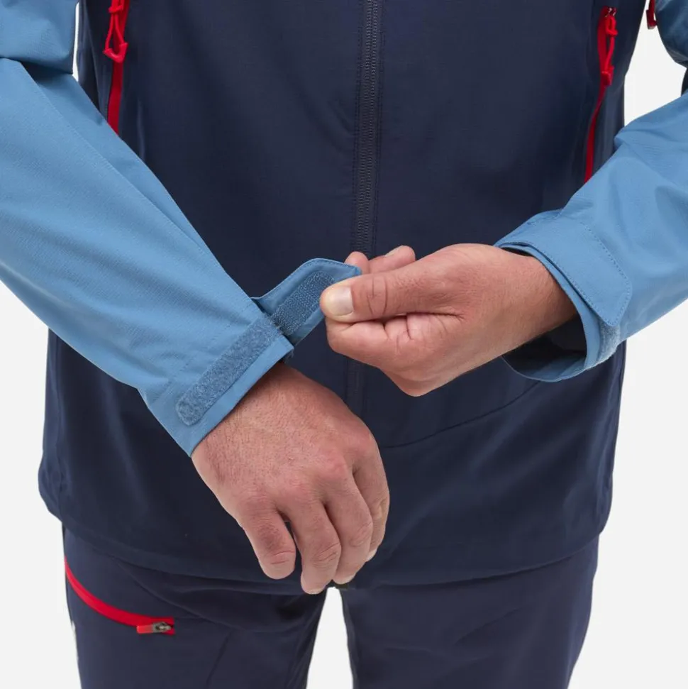 La veste Fitz Roy Saphir Coronet Blue de Millet est idéale pour la randonnée par temps pluvieux. Ses zips d’aérations vous permettent de réguler encore plus facilement la chaleur.