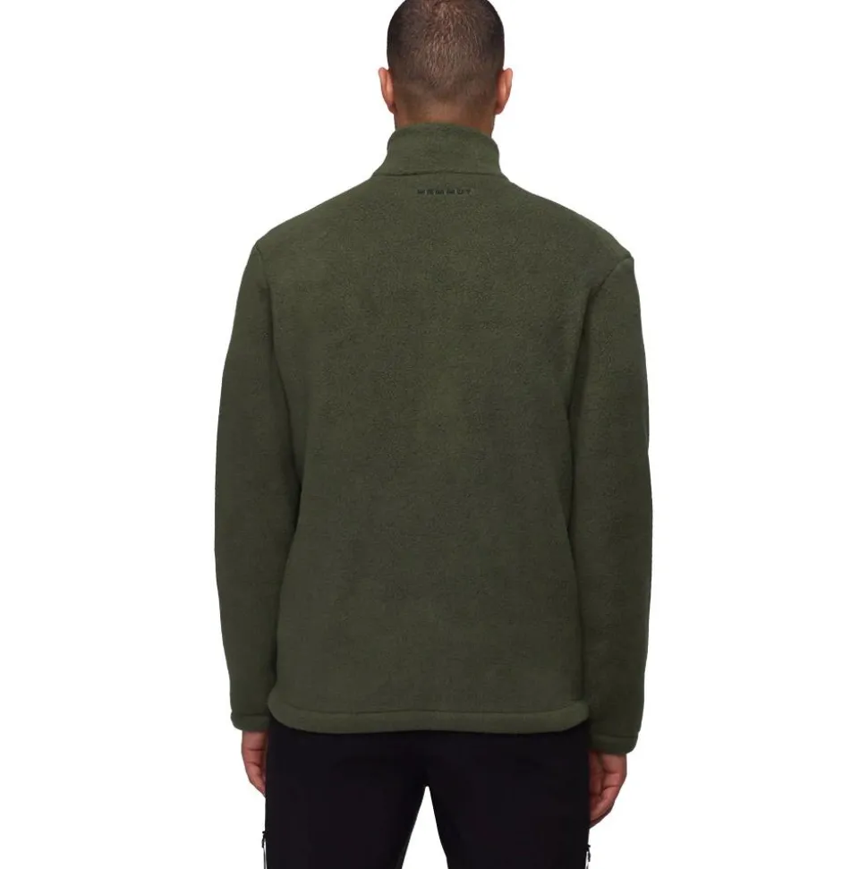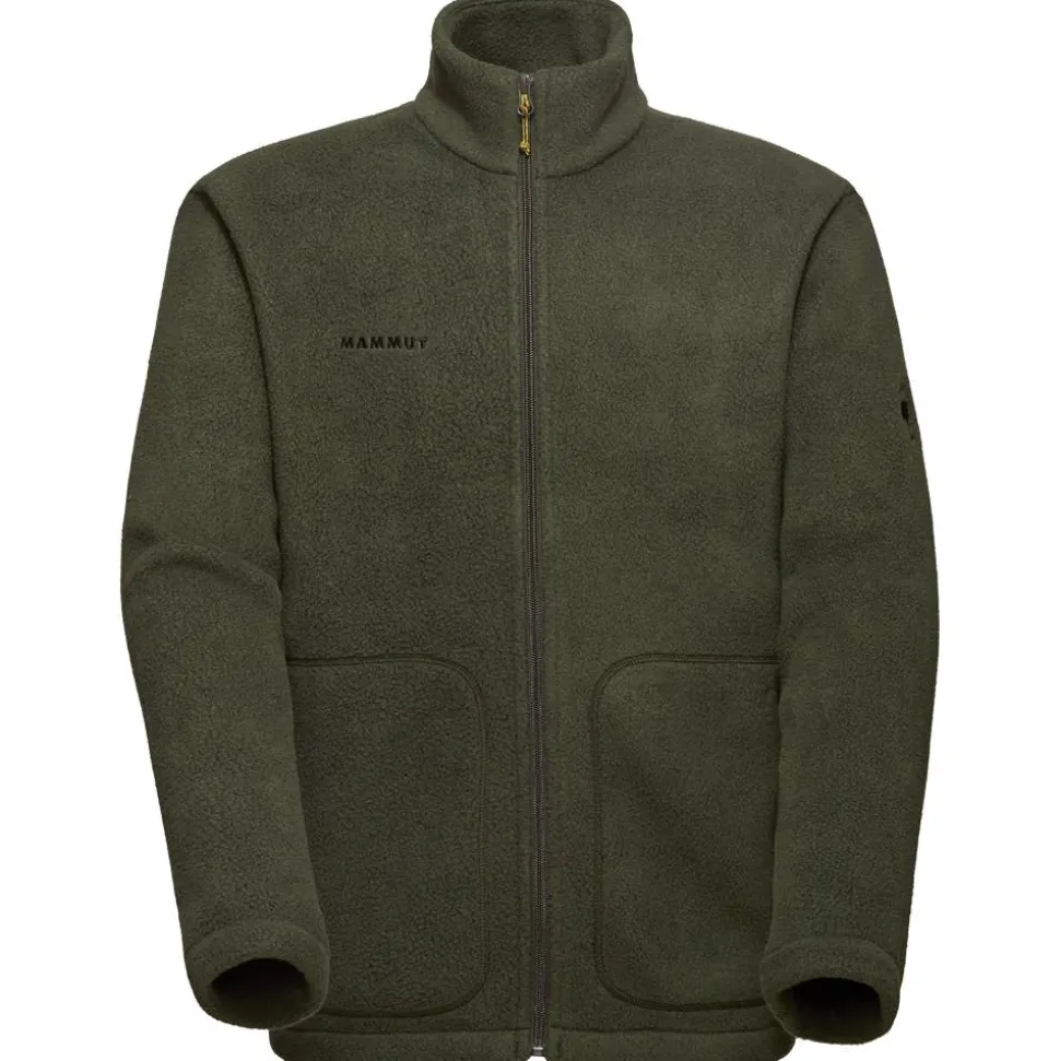 La veste technique Falera Ml Jacket Men Dark Marsh de Mammut, conçue en polyester recyclé, offre une liberté de mouvement et un confort optimal pour les activités en plein air.